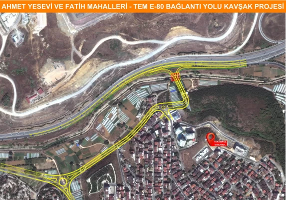 Ahmet Yesevi Mahallesi ve Fatih Mahallesi, TEM - E-80 Bağlantı Yolu’ndan TEKNOPOL İstanbul Kampüsü’ne ve ilçemizin bu bölgesindeki yerleşimlere konforlu bir şekilde ulaşım sağlanması amacıyla yapmayı planladığımız 1.930 metre uzunluğundaki yol ve kavşak projesinin fizibilite çalışmalarını başlattık.